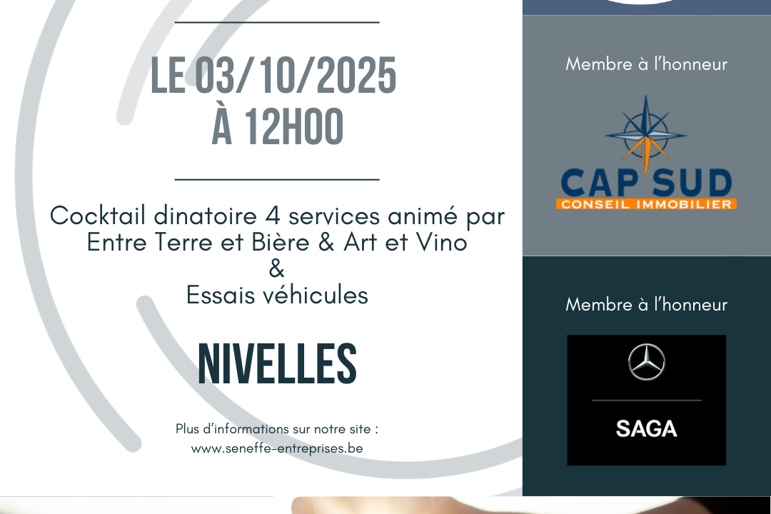 Chers membres, chers amis, Il reste 40 places !! 🎉 Événement VIP – Nouvel An au Gré du Vent 🎉 📍 Lieu : Restaurant Au Gré du Vent, Rue de Soudromont 67, 7180 Seneffe🕛 Date et heure : Vendredi 23 janvier 2026, de 12h00 à 15h30 L’un de nos moments les plus attendus de l’année…